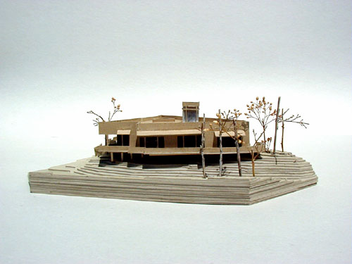 | New passive solar, 1200 s.f. eco-house with south decks overlooking creek and riparian area and views to the ocean. Open plan combining kitchen, living, dining with study/guest room alcove, all with solar orientation, and private decks. Roof deck allows for gatherings, sun bathing and roof gardening with spectacular ocean views to the southwest. | ||||||||||||||
